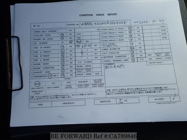 | Chassis No. | WBAAL32-030FH64058 | Engine Code | 194E |