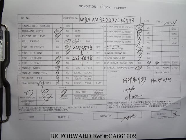 | Chassis No. | WBAVM92020VL66778 | Engine Code | N20B20A |