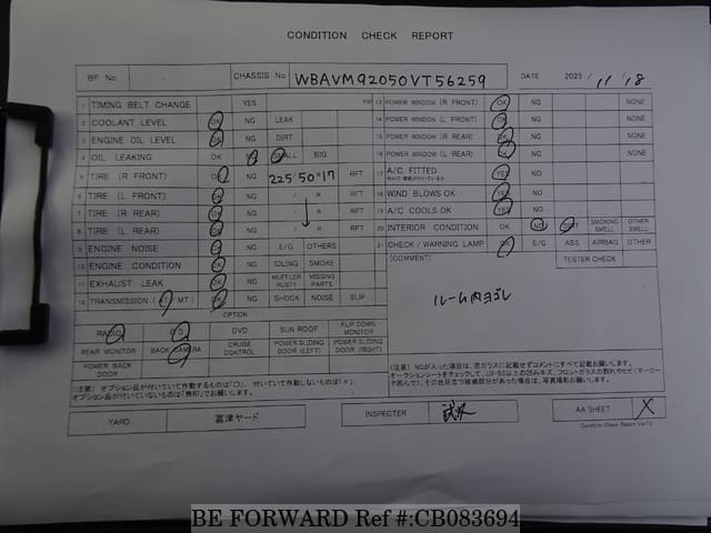 | Chassis No. | WBAVM92050VT56259 | Engine Code | N20B20A |