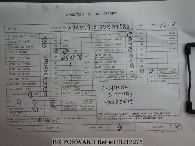 | Chassis No. | WBAVL92010VX84588 | Engine Code | N20B20A |