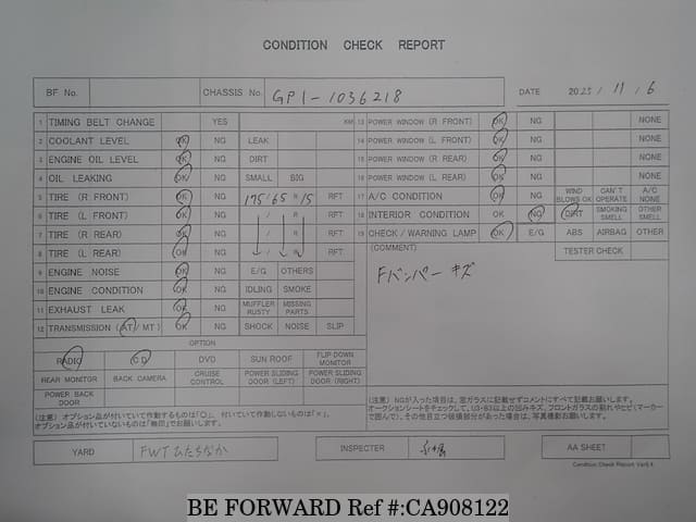 | # Chasis | GP1-1036218 | Código de Motor | LDA-MF6 |
