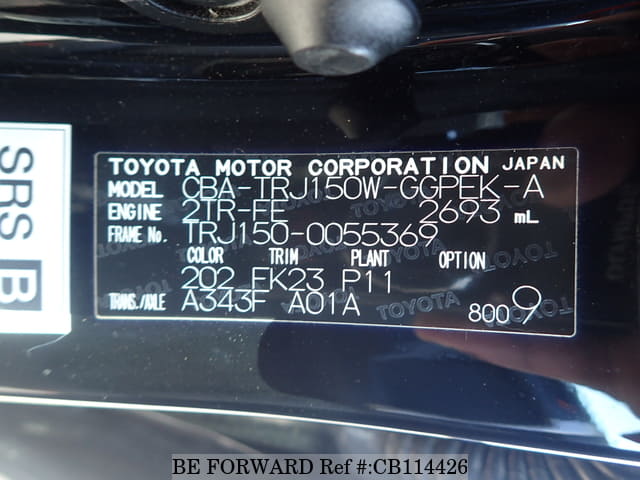 | Código de Modelo | CBA-TRJ150W | Dirección | Derecha |