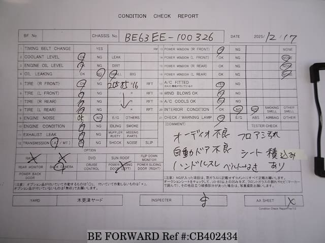 | Chassis # | BE63EE100326 | Code moteur | 4M51 |