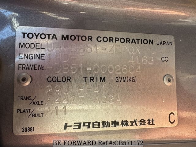 | Chassis # | HDB510002604 | Code moteur | 1HD |