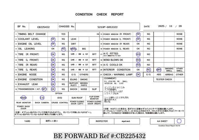 | შასის ნომერი | S210P-0053322 | ძრავის კოდი | EF |