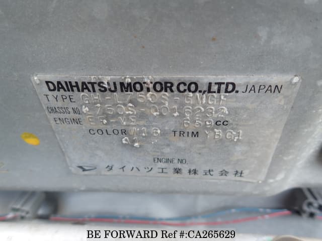 | შასის ნომერი | L750S-0016232 | ძრავის კოდი | EF |