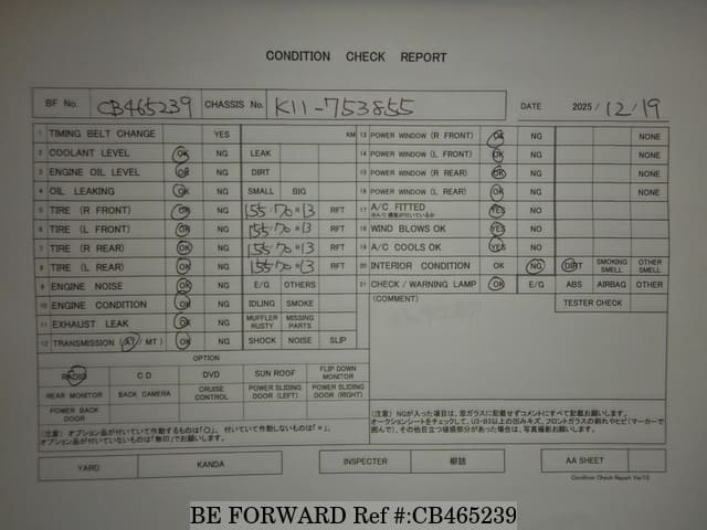 | შასის ნომერი | K11-753855 | ძრავის კოდი | CG10 |