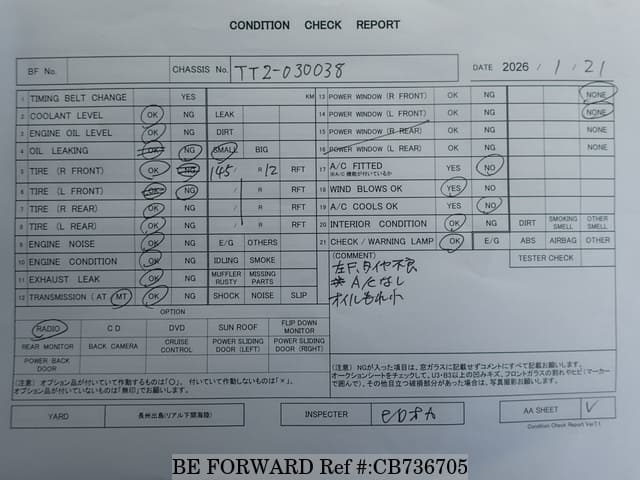 | შასის ნომერი | TT2-030038 | ძრავის კოდი | EN07 |