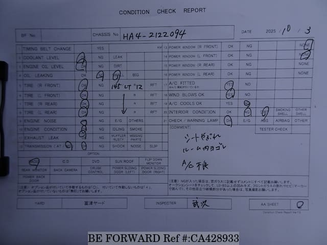 | Chassis No. | HA4-2122094 | Engine Code | E07A |