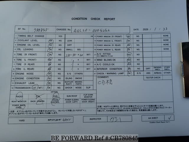 | Model Code | DBA-AGL20W | Steering | Right |