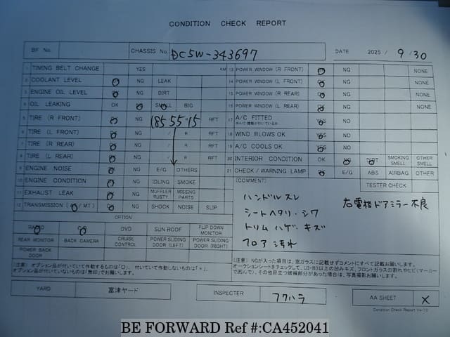 | Model Code | DBA-DC5W | Steering | Right |