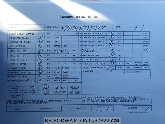 | Chassis No. | WDD1760522J313978 | Engine Code | 133 |
