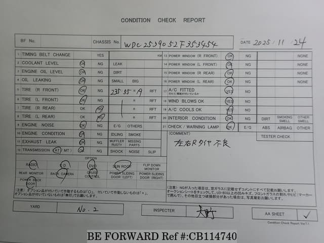| Chassis No. | WDC2539052F353454 | Engine Code | 651 |