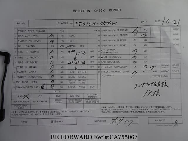 Chassis No. FE51CB-550741 Engine Code 4D33