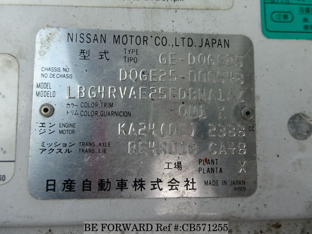 | Chassis No. | DQGE25000548 | Engine Code | KA24 |