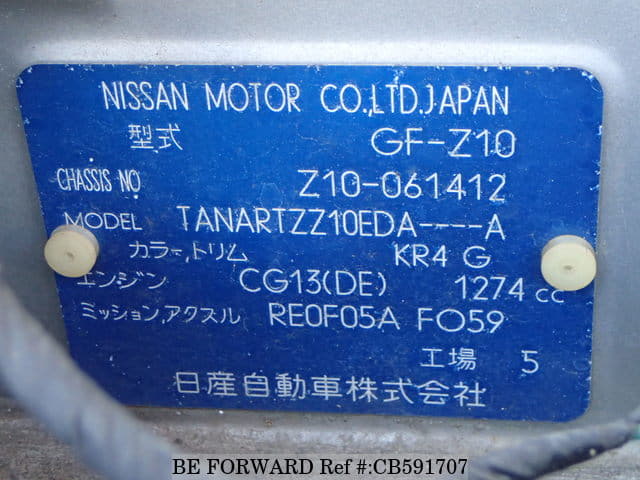 | Chassis No. | Z10-061412 | Engine Code | CG13 |