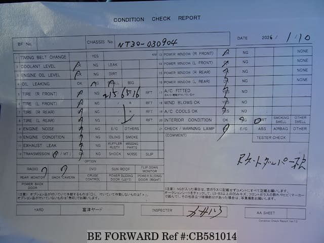 | Chassis No. | NT30-030904 | Engine Code | QR20 |