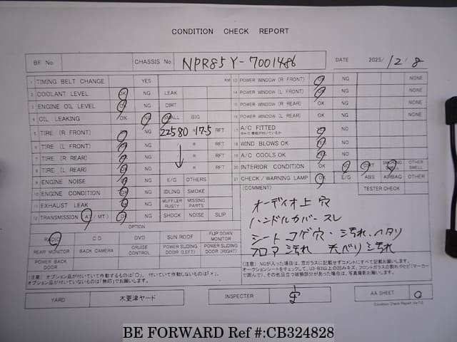 | Шасси # | NPR85Y-7001486 | Код двигателя | 4JJ1 |