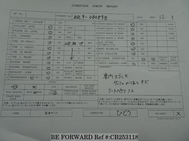 | Chassis No. | BR9-060898 | Engine Code | EJ25 |