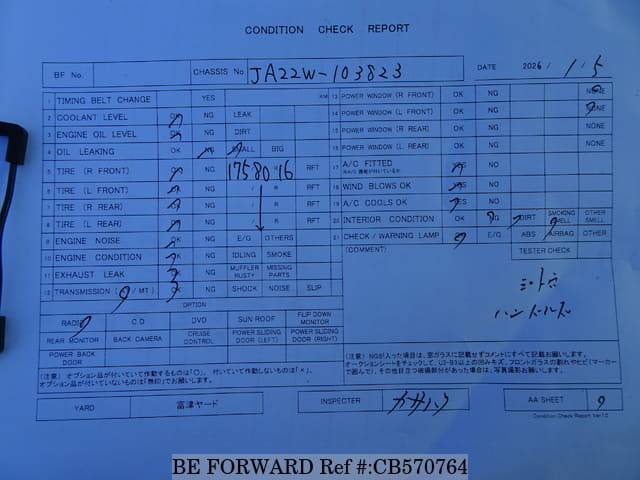 | Chassis No. | JA22W-103823 | Engine Code | K6A |