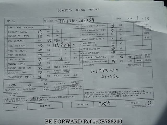 | Model Code | GH-JB23W | Steering | Right |