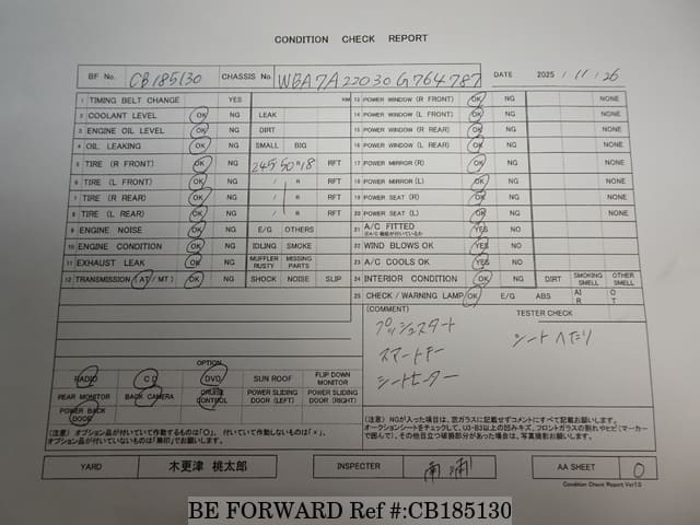 | Chassis No. | WBA7A22030G764787 | Msimbo wa Injini | B58B30A |