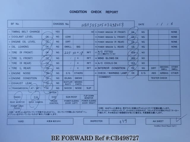 | Chassis No. | WBAJG520503G38253 | Msimbo wa Injini | B48A20A |