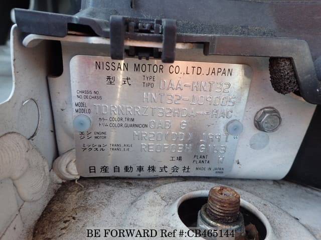 | Chassis No. | HNT32-109005 | Msimbo wa Injini | MR20-RM31 |