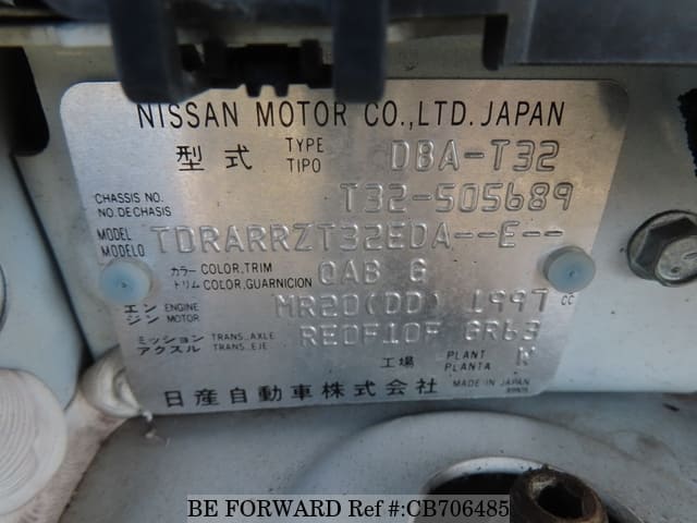 | Chassis No. | T32-505689 | Msimbo wa Injini | MR20 |