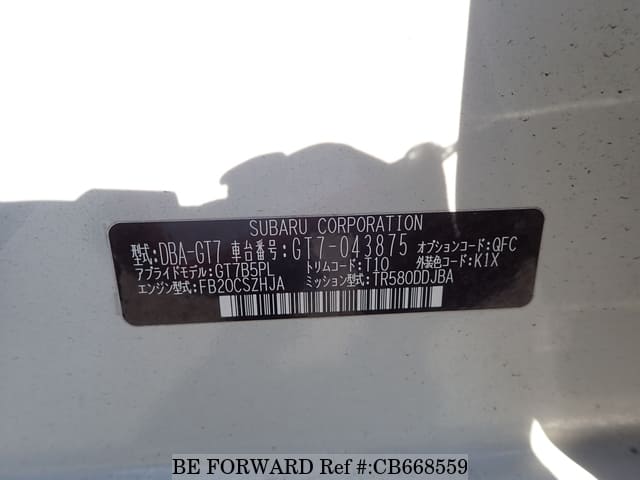 | Chassis No. | GT7-043875 | Msimbo wa Injini | FB20 |