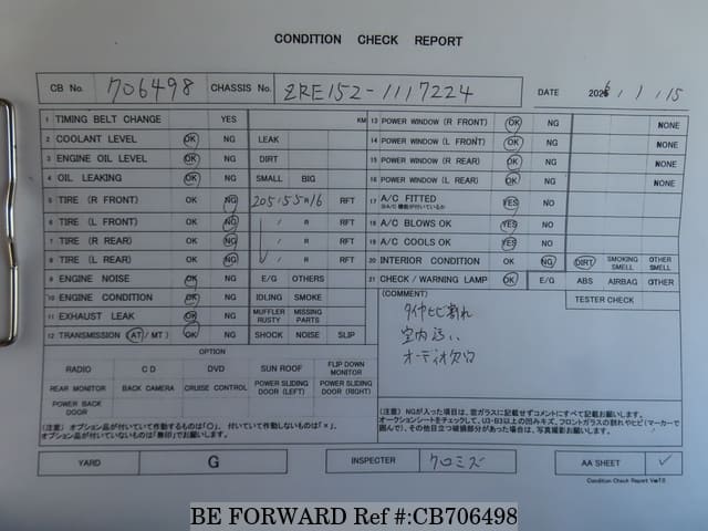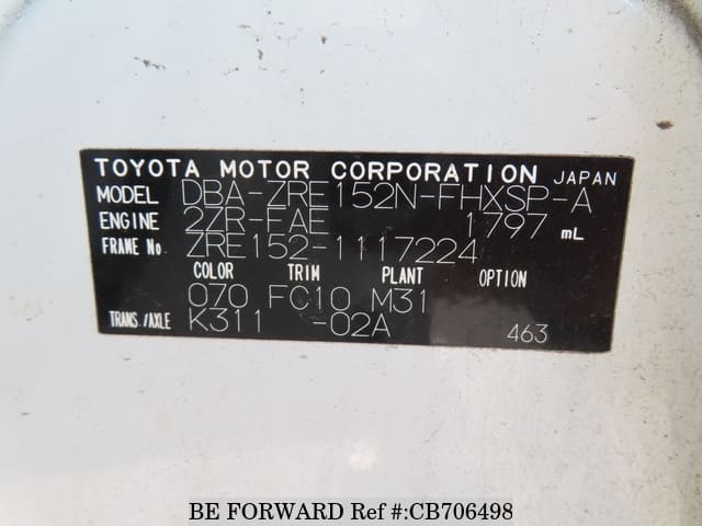 | Chassis No. | ZRE152-1117224 | Msimbo wa Injini | 2ZR |
