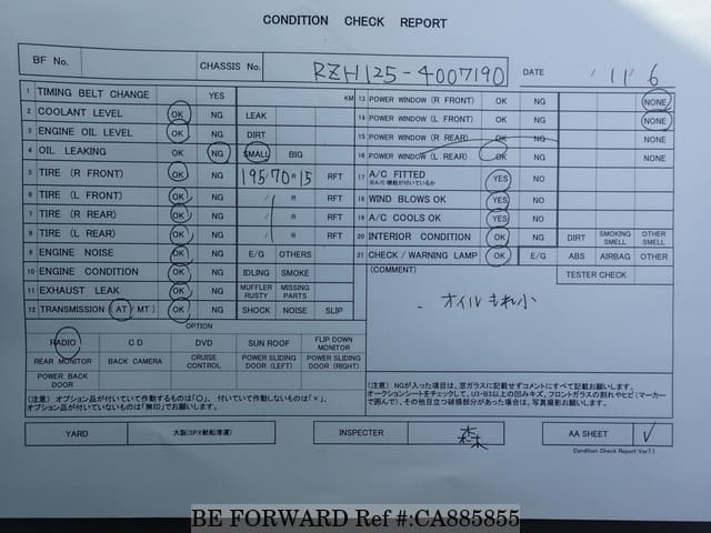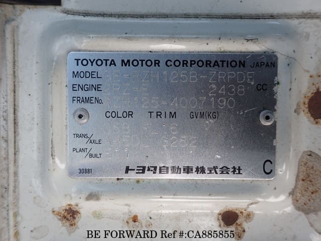 | Chassis No. | RZH1254007190 | Msimbo wa Injini | 2RZ |