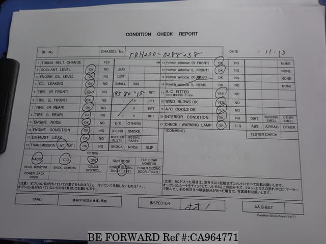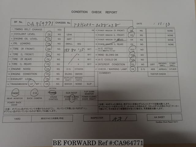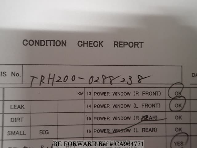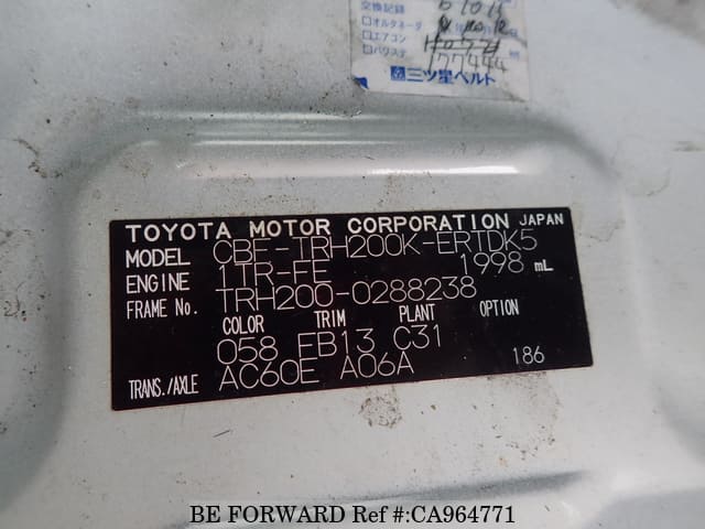 | Chassis No. | TRH200-0288238 | Msimbo wa Injini | 1TR |