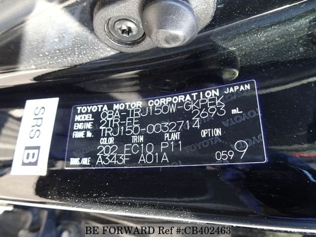| Kanuni ya Modeli | CBA-TRJ150W | Uendeshaji | Kulia |