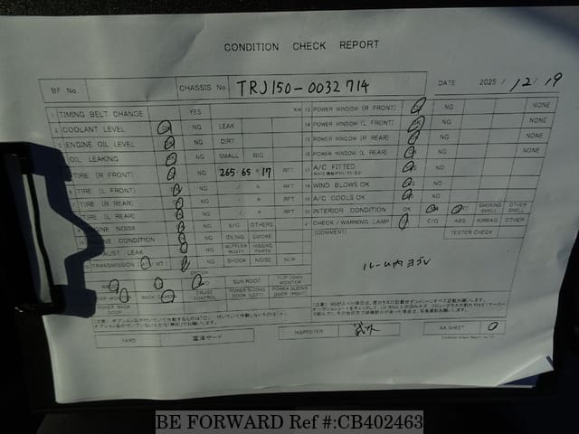 | Chassis No. | TRJ150-0032714 | Msimbo wa Injini | 2TR |