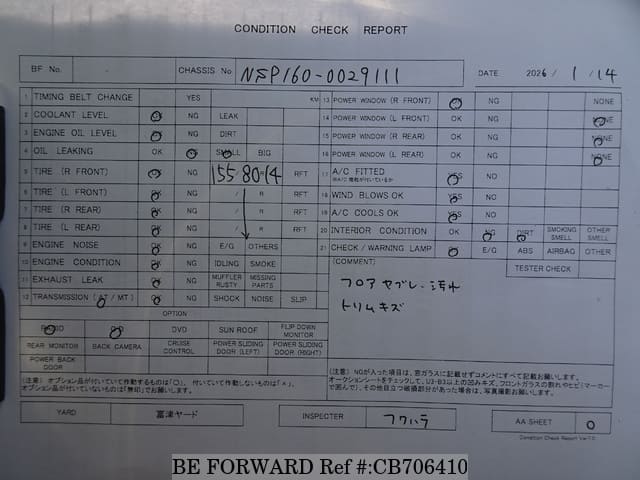 | Chassis No. | NSP160-0029111 | Msimbo wa Injini | 1NR |