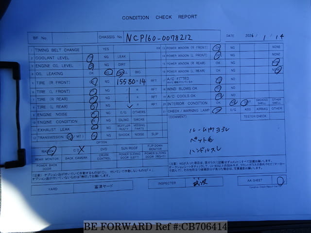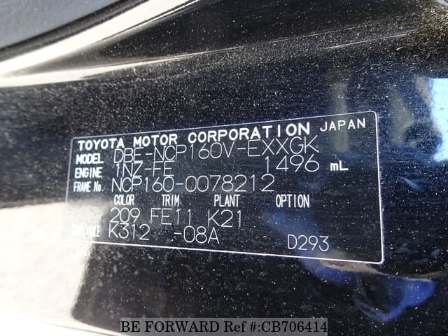 | Chassis No. | NCP160-0078212 | Msimbo wa Injini | 1NZ |