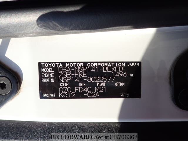 | Chassis No. | NSP141-8022577 | Msimbo wa Injini | 2NR |