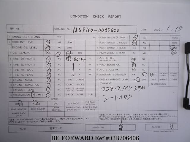 | Chassis No. | NCP160-0085600 | Msimbo wa Injini | 1NZ |