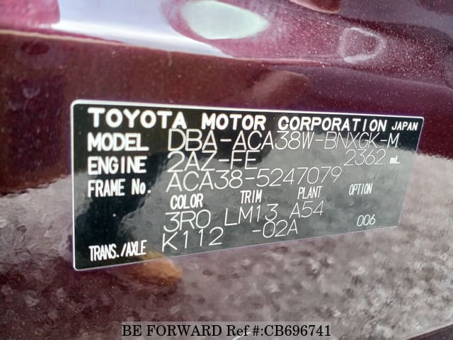 | Chassis No. | ACA38-5247079 | Msimbo wa Injini | 2AZ |