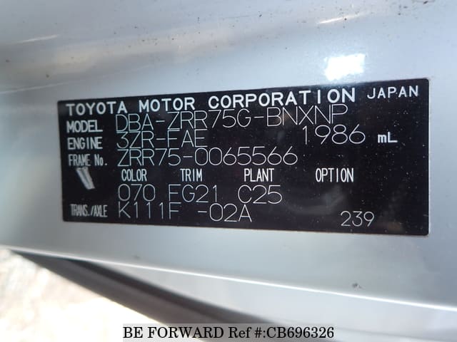 | Chassis No. | ZRR75-0065566 | Msimbo wa Injini | 3ZR |