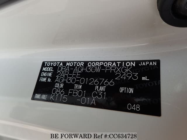 | Chassis No. | AGH30-0126766 | Engine Code | 2AR |