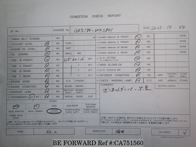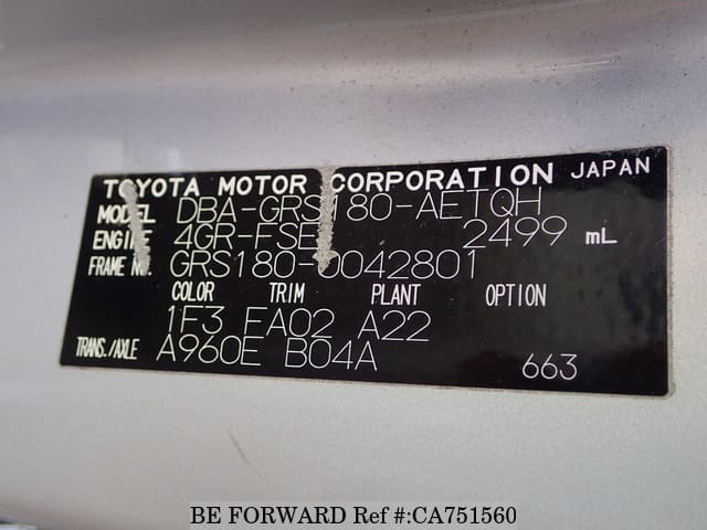 | Chassis No. | GRS180-0042801 | Engine Code | 4GR |