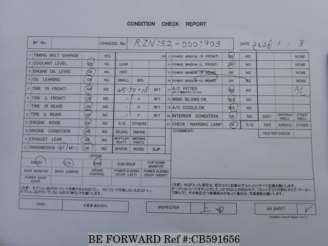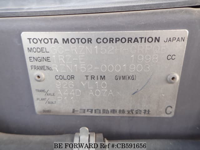 | Chassis No. | RZN152-0001903 | Engine Code | 1RZ |
