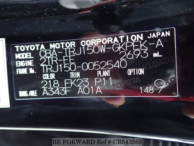 | Chassis No. | TRJ150-0052540 | Engine Code | 2TR |