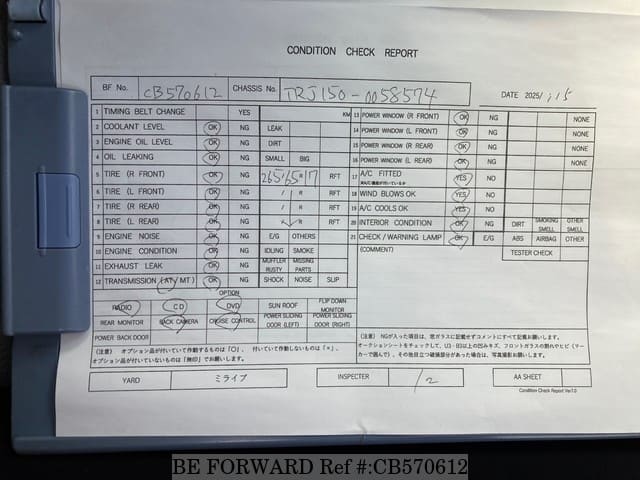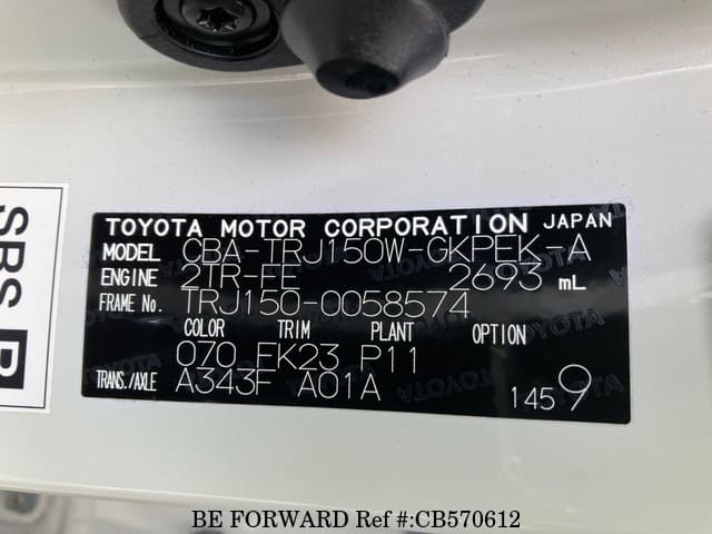 | Chassis No. | TRJ150-0058574 | Engine Code | 2TR |