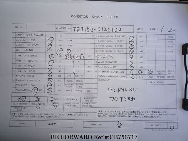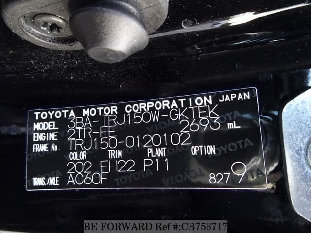 | Chassis No. | TRJ150-0120102 | Engine Code | 2TR |