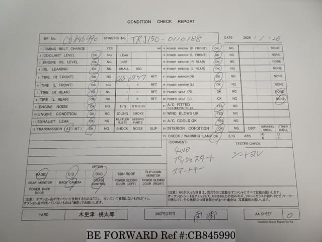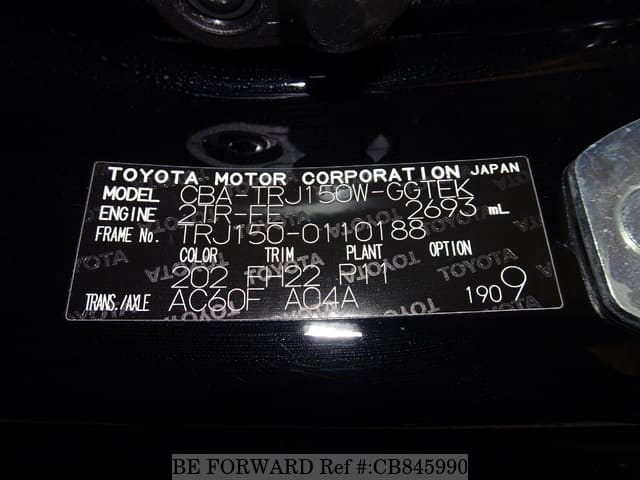 | Chassis No. | TRJ150-0110188 | Engine Code | 2TR |