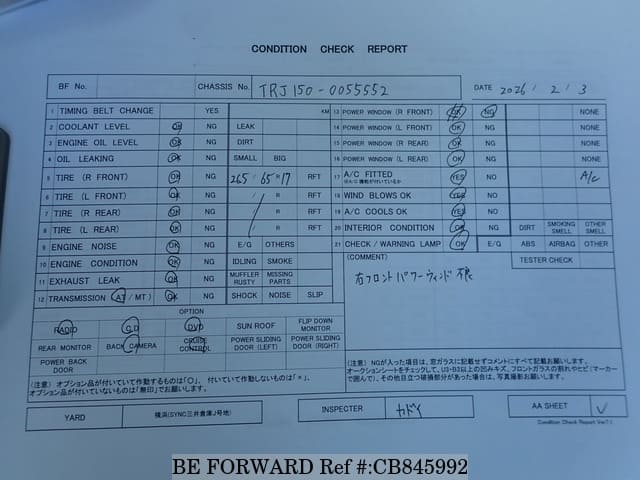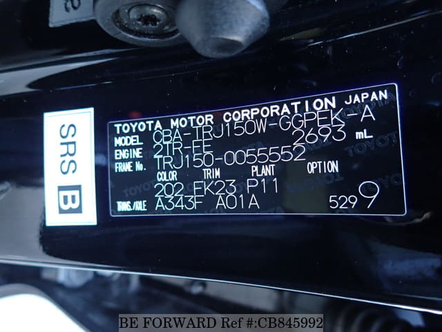 | Chassis No. | TRJ150-0055552 | Engine Code | 2TR |
