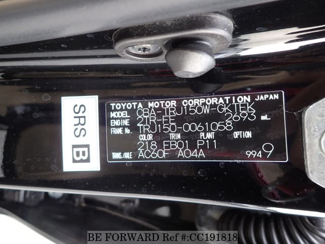 | Chassis No. | TRJ150-0061058 | Engine Code | 2TR |